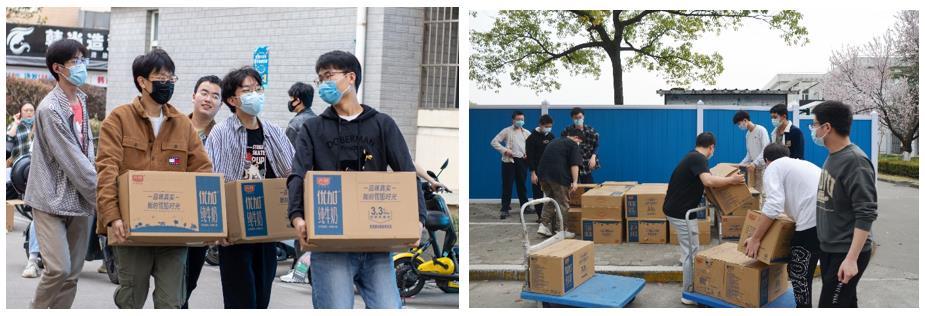 我院学生志愿者搬运物资、协助学校各项疫情防控工作