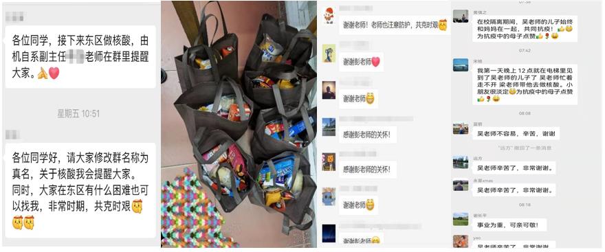三是了解师生的实际困难,帮助协调解决。学院深入教师、学生社区等,全力解决师生面临的实际困难,对师生进行思想引导、心理疏导、生活保障和关心关爱工作,大家一起并肩作战,抱团取暖,用温暖守护校院平安,踏坎坷,守望相助渡难关。