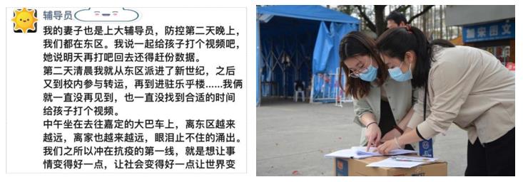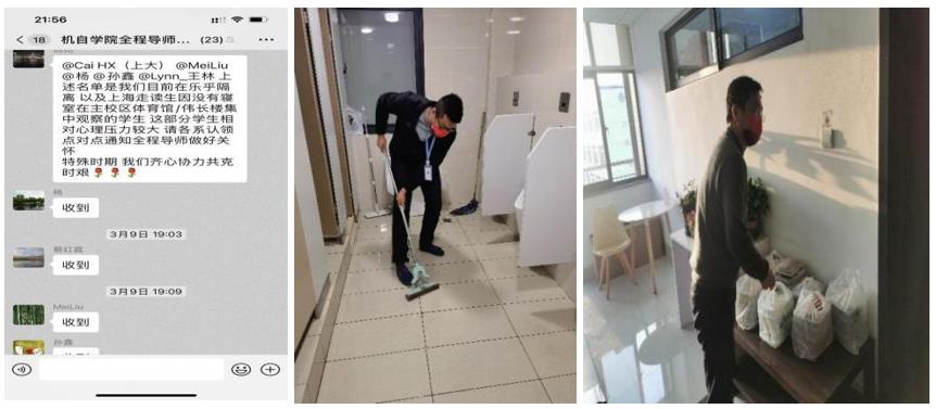 全程导师关爱学生、党员教师打扫楼宇卫生、运餐等