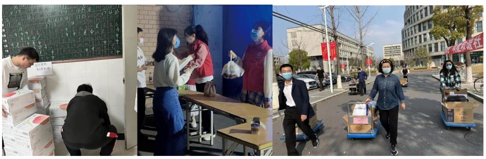辅导员、学生党员担任物资“摆渡人”,为学生运送物资