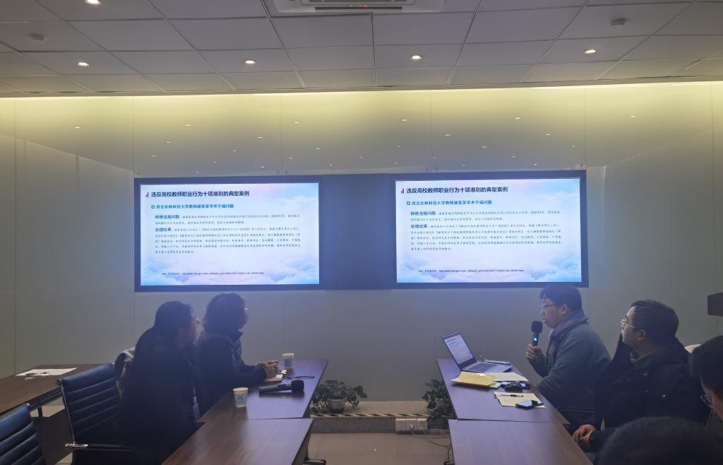 接着,支部委员张云鹏老师做“百年建党,每月一讲”系列讲座。张老师生动地讲述了中国共产党百年来的艰辛历程。党支部书记周岐斌老师带领党员同志学习了《2021年上海大学师德警示教育学习资料》,并结合教育部公布的违反教师行为准则的案例提醒广大教师要深刻认识自己肩负的职责和使命,不忘立德树人初心,牢记为党育人、为国育才使命,率先垂范、以身作则,做学生为学、为事、为人的示范。