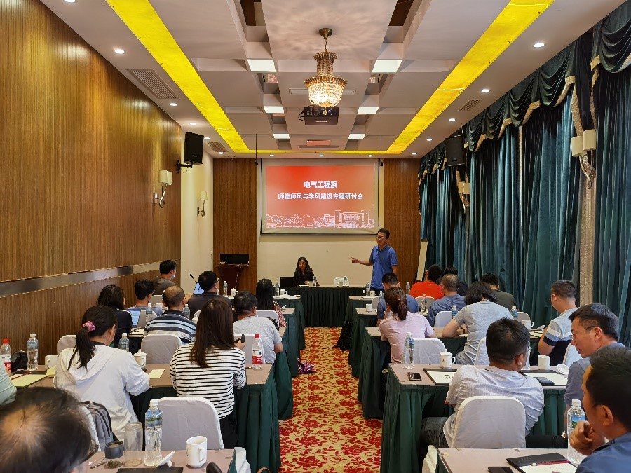 随后,电气工程系主任汪飞老师主持师德专题教育动员会及师德师风与学风建设专题研讨会。汪老师向大家传达了教育部召开教师思想政治和师德师风建设经验交流暨师德专题教育启动部署会的会议精神、教育部关于在教育系统开展师德专题教育的通知、上海大学师德专题教育方案,并带领大家集中学习了习近平总书记关于教育的重要论述、新时代高校教师职业行为十项准则。他要求全体教师要认真学习领会,持续贯彻落实,切实增强做好教师思想政治和师德师风建设工作的思想自觉和行动自觉。与会教师也纷纷发言,表示将以新时代高校教师职业行为十项准则严格要求自己,坚守为党育人、为国育才的初心,做党和人民满意的“四有”好老师。