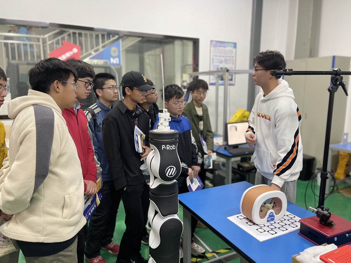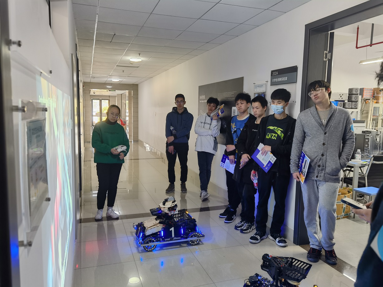 结合了往年实验室开放日中好的经验,此次学院精选了四个实验室向社区学院学生开放。分别是智能制造及机器人重点实验室、智慧工厂实验室、PLC创新实验室和智能车创新实验室。为了帮助同学们提升参观体验,学院还设计了四条不同的路线,由志愿者带队参观,避免了人群之间的拥堵。