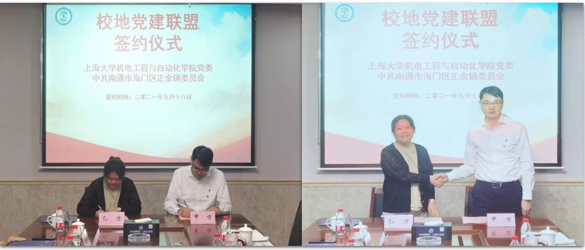 为了加强校地合作,努力打造跨区域党建联盟新样板,积极推进学院党史学习教育走实走深。5月18日,yl6809永利官网党委和中共南通市海门区正余镇委员会举行校地党建联盟签约仪式,上海大学我院党委书记于瀛洁,学院党委副书记、纪委书记仇静豪,学院副院长苗中华,海门区副区长陈腾,海门区委组织部副部长,老干部局局长王飞,正余镇党委书记郁逵,正余镇镇长王思出席了此次活动。