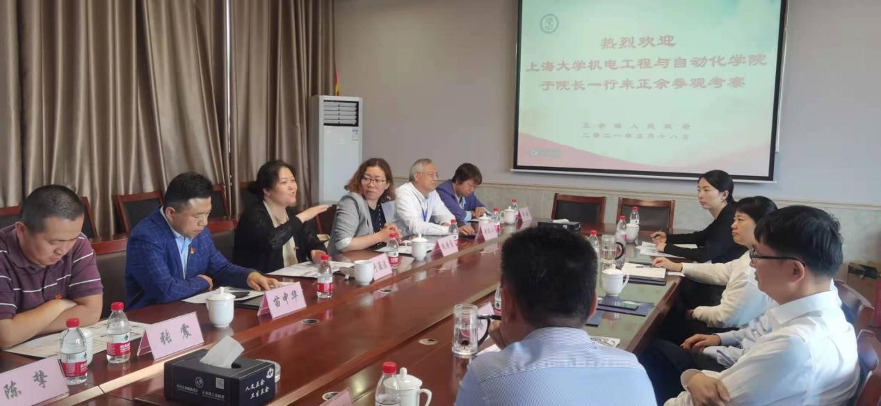随后,双方就关心的问题开展了深入交流。正余镇党委书记郁逵介绍了正余镇机器人产业发展情况,他表示正余正锚定设“全省有影响、全国有地位、全球有竞争力的机器人特色小镇和机器人产业研发制造高地”发展目标,全力以赴按下项目建设“快进键”、跑出产业发展“加速度”。他希望,上海大学我院未来可以一如既往关心、支持正余发展,充分发挥高校人才、科研等资源优势,协助引进高层次人才、加强校地产学研合作。于瀛洁书记表示,正余镇机器人产业发展基础优、发展势头好、发展前景佳,学院未来将以党建联盟为纽带,与正余镇全面深化校地产学研合作,助力正余镇开展人才培养、科技创新、产业发展等方面工作,努力实现双方共赢。