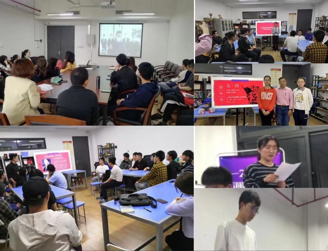 曾荣获“上海市青年五四奖章(集体)”的青年学生科创团队——上海大学自强队在五四青年节来临之际,开展学习“五四精神”以及“习近平总书记在清华大学重要讲话精神”活动。本硕三十余名学生,在指导教师黄慎之和本科生党建负责人仲海涛老师的带领下,通过“重温五四运动历史意义”、“青年人如何发扬五四精神”、“畅谈学习‘习近平总书记在清华大学讲话’感想”、“学习习近平总书记关于青年工作重要论述”、“对话成长——互动交流”等活动环节,感悟五四精神,探究青年学子成长“秘籍”。同学生深深感受到时代在变,但是青年的目标未变,始终要为中华之崛起而读书。如,在交流环节,刘欣欣同学表示,“作为一名即将步入社会的大四学生,我将积极响应习近平总书记号召,投身中国制造2025,在接下来的工作中为研发国产机械手贡献自己的力量。”罗宇轩表示“作为当代的青年,我们要树立为祖国为人民永久奋斗、赤诚奉献的坚定理想,勇于创新,敢为人先,敢于突破,肩负时代使命,在真刀真枪的实干中成就一番事业。”