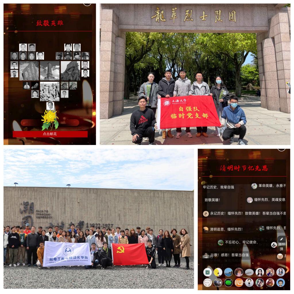 此外,学院还组织了“缅怀‘海空卫士’——王伟烈士”等纪念活动。特别是自强队临时党支部前赴龙华烈士陵园进行扫墓,感受先烈们可歌可泣、英勇悲壮的感人事迹,在鲜红的党旗下庄严宣誓,不忘初心,牢记使命。