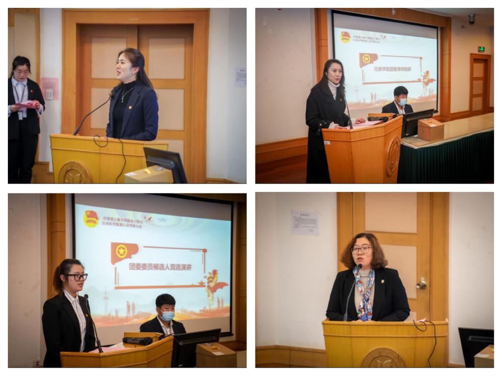 首先进行预备会议,预备会议逐项审议了正式代表审查报告、大会议程、大会主席团名单等六项议程。13点20分,大会正式会议开始。首先由上海大学团委副书记姜晓庆老师致辞。姜老师首先肯定了我院团委工作的完成度。我院团员体量大,工作开展困难度较高,但我院团委工作总体质量较好,团员学习热情也日益高涨。同时姜老师也提出了几份期待:在日常的团员学习中,如青年大学习,提出倡议点,引导团员加强学习;服务好团员青年,发挥专业优势,利用创新创业、挑战杯等项目、大赛锤炼青年团员能力;从严治团,做好团员推优工作。随后,兄弟学院理学院团委书记王进老师进行发言。王进老师赞扬了我院青年团员取得的屡项佳绩,希望在接下来的团委工作中能与我院加强合作,更好地发挥两个大学院的学科优势。