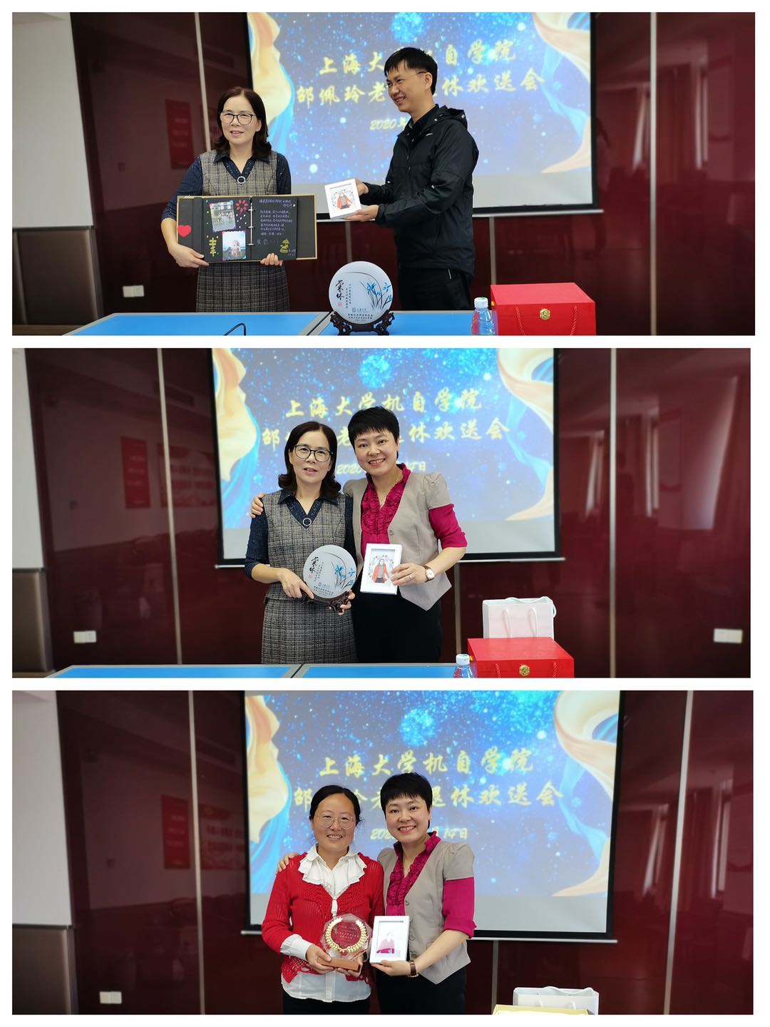 会上,仇静豪副书记回顾了两位教师的职业生涯,指出她们是我院乃至上海大学发展的建设者与见证者,并对两位老师爱岗敬业和无私奉献的工作态度给予了高度评价,对她们在我院的教育事业发展中做出的积极贡献表示衷心的感谢,并给予了美好的祝福。希望学院全体在职学工向前辈学习,向榜样学习,传承良好的工作作风,推动我院人才培养工作更上台阶。