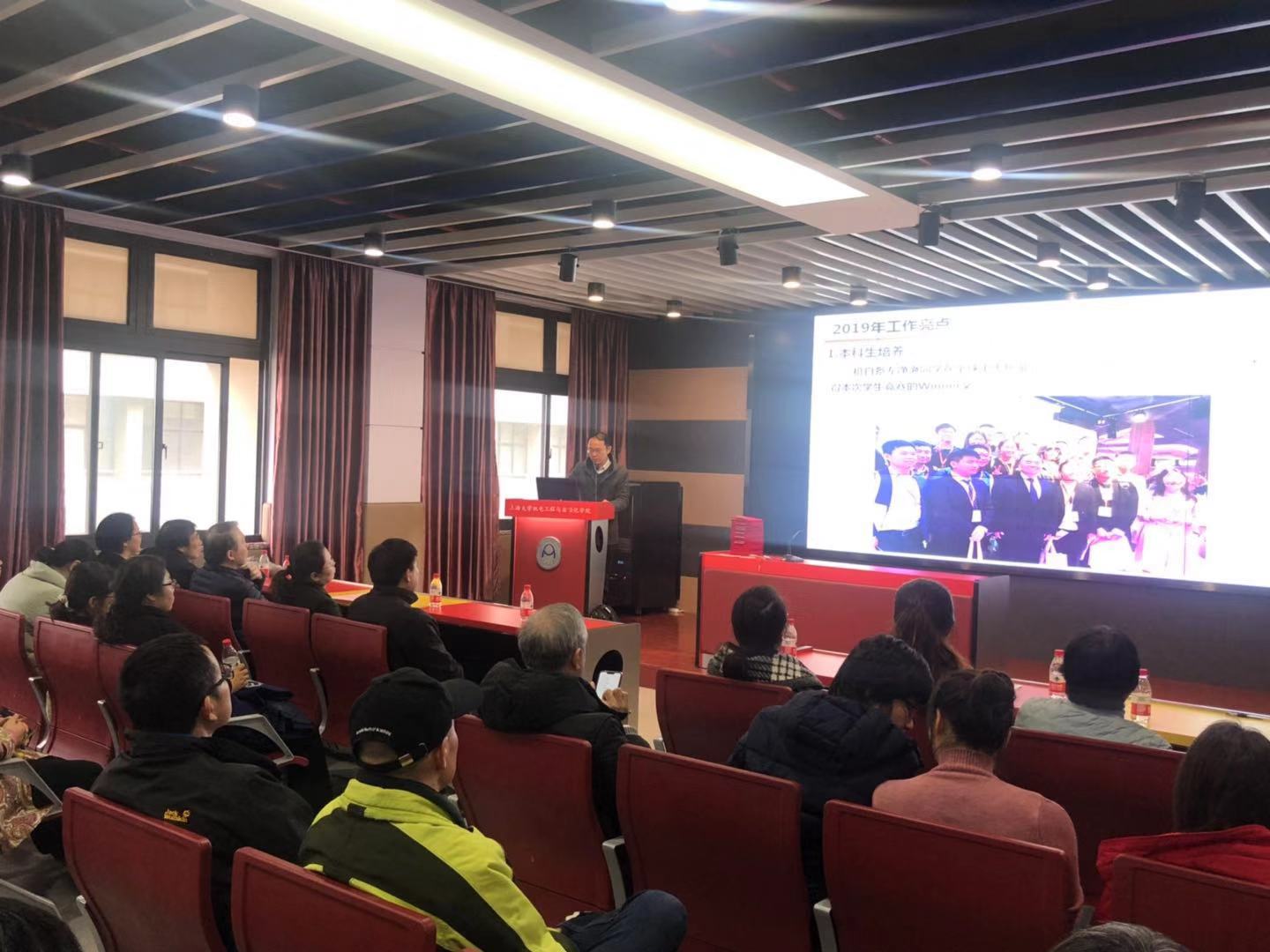 会议首先由系主任田应仲老师向大家汇报了2019年全系的工作情况。在全系师生共同的努力下,在学生培养和科研经费的增长上都取得了不俗的成绩。值得一提的是,在本科生培养方面,机械设计制造及其自动化专业获批上海市一流本科专业,教育部国家一流本科专业,同时,《以新工科建设为抓手的智能制造创新型人才培养体系建设》获批2019年上海高校本科重点改革项目。