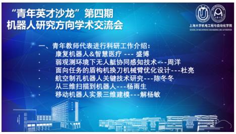 10月27日下午,yl6809永利官网通过线上方式成功举办第四期青年英才沙龙,我院副院长、自动化系主任苗中华教授,上海大学工程技术训练中心主任郭帅教授、上海机器人研究所副所长、上海机器人产业技术研究院副院长袁建军教授作为指导专家参与本次活动,会议由我院青联会主席解杨敏主持。