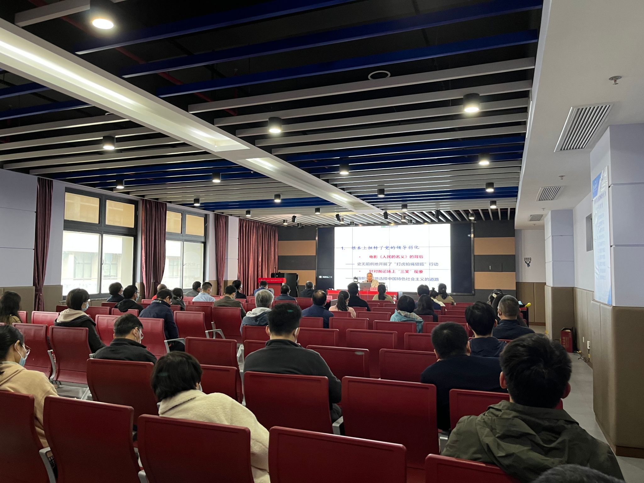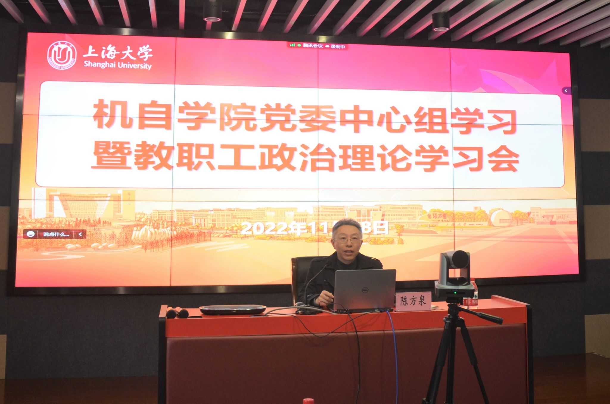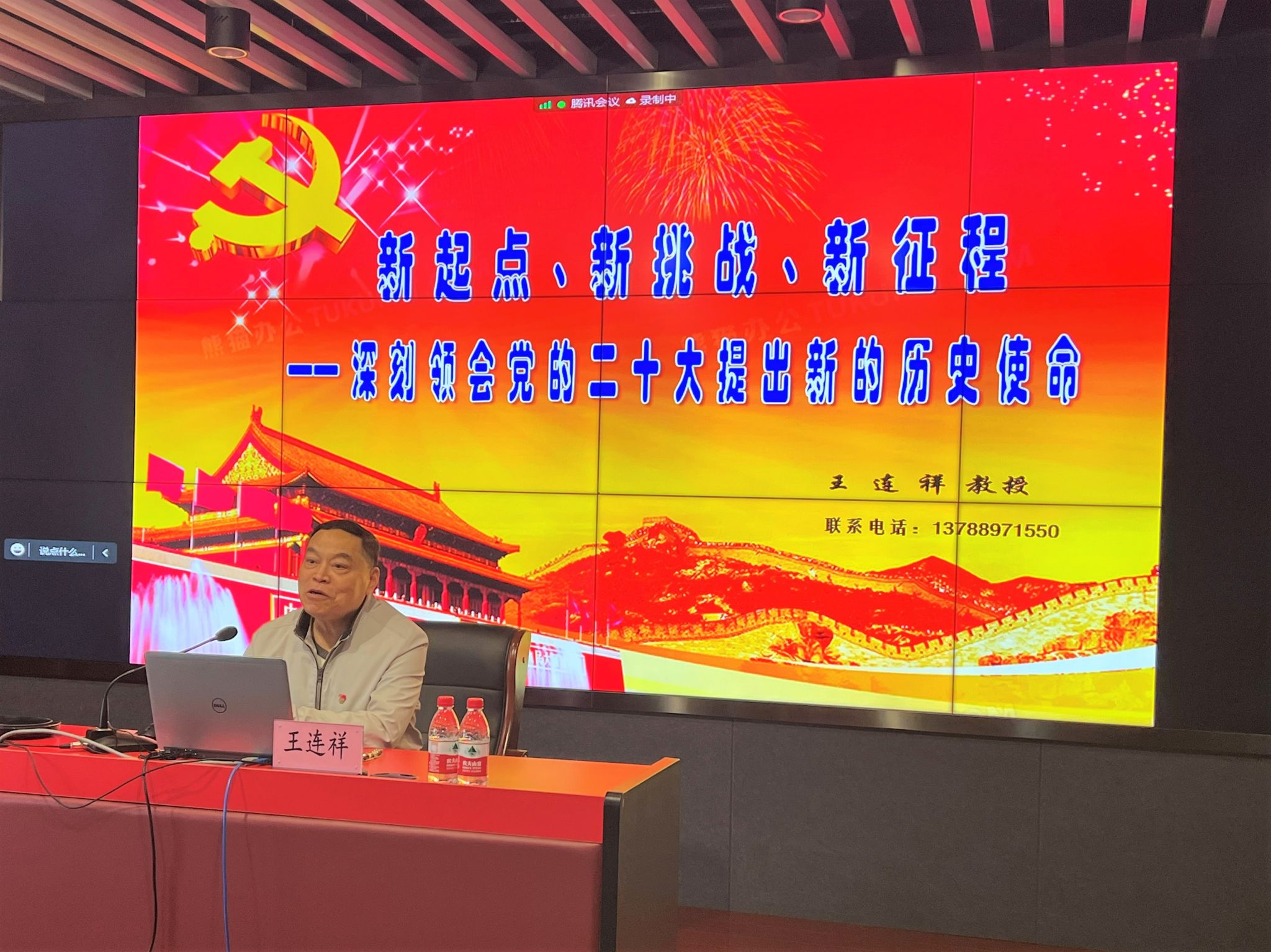 2022年11月18日上午,我院党委中心组学习暨教职工政治思想理论学习会在宝山校区东区9号楼伯时会堂举办,我院党委特邀原上海市委宣传部党校教研室副主任、上海工会管理职业学院干部培训中心主任王连祥教授,为与会教师带来“新起点、新挑战、新征程——深刻领会党的二十大提出新的历史使命”的专题讲座。讲座线上线下同步进行,我院党委中心组成员、各系党政班子成员和组织员线下参会,300多名教职工在腾讯会议室线上参与。讲座由陈方泉书记主持。