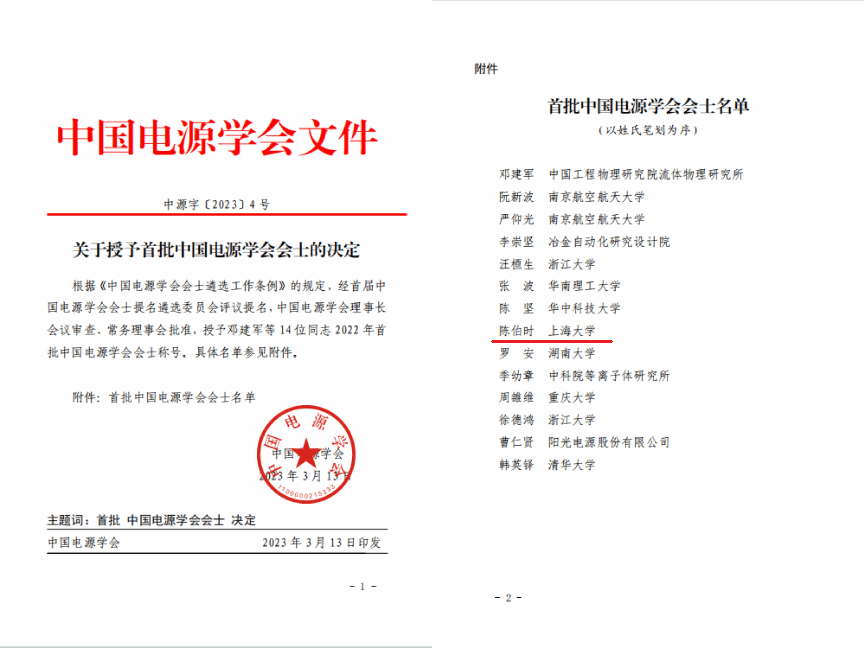 近日,经首届中国电源学会会士提名遴选委员会评议提名,中国电源学会理事长会议审查、常务理事会批准,授予14位同志2022年首批中国电源学会会士称号。电气工程系陈伯时教授成功入选。