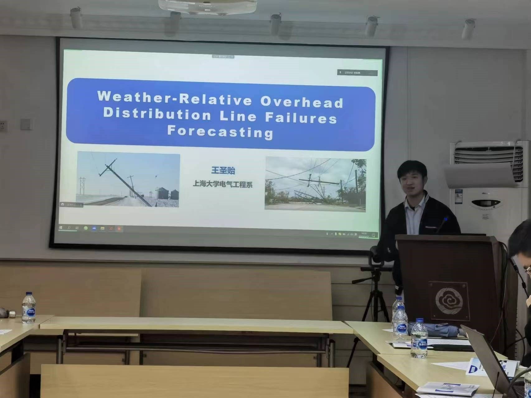 随后,大家移步至台风所会议室举行技术研讨活动。梅勇成和周歧斌书记分别介绍了上海台风所和上海大学电气工程系相关情况。陈佩燕主任做《台风灾害风险评估技术研究与电力行业的应用》的报告,张帅副主任做《党建业务下台风观测业务工作进展》报告,电气工程系王圣贻博士做《天气相关的架空配电线路故障预测》报告,周岐斌博士做《台风灾害对电力系统的影响及其应对措施》报告。