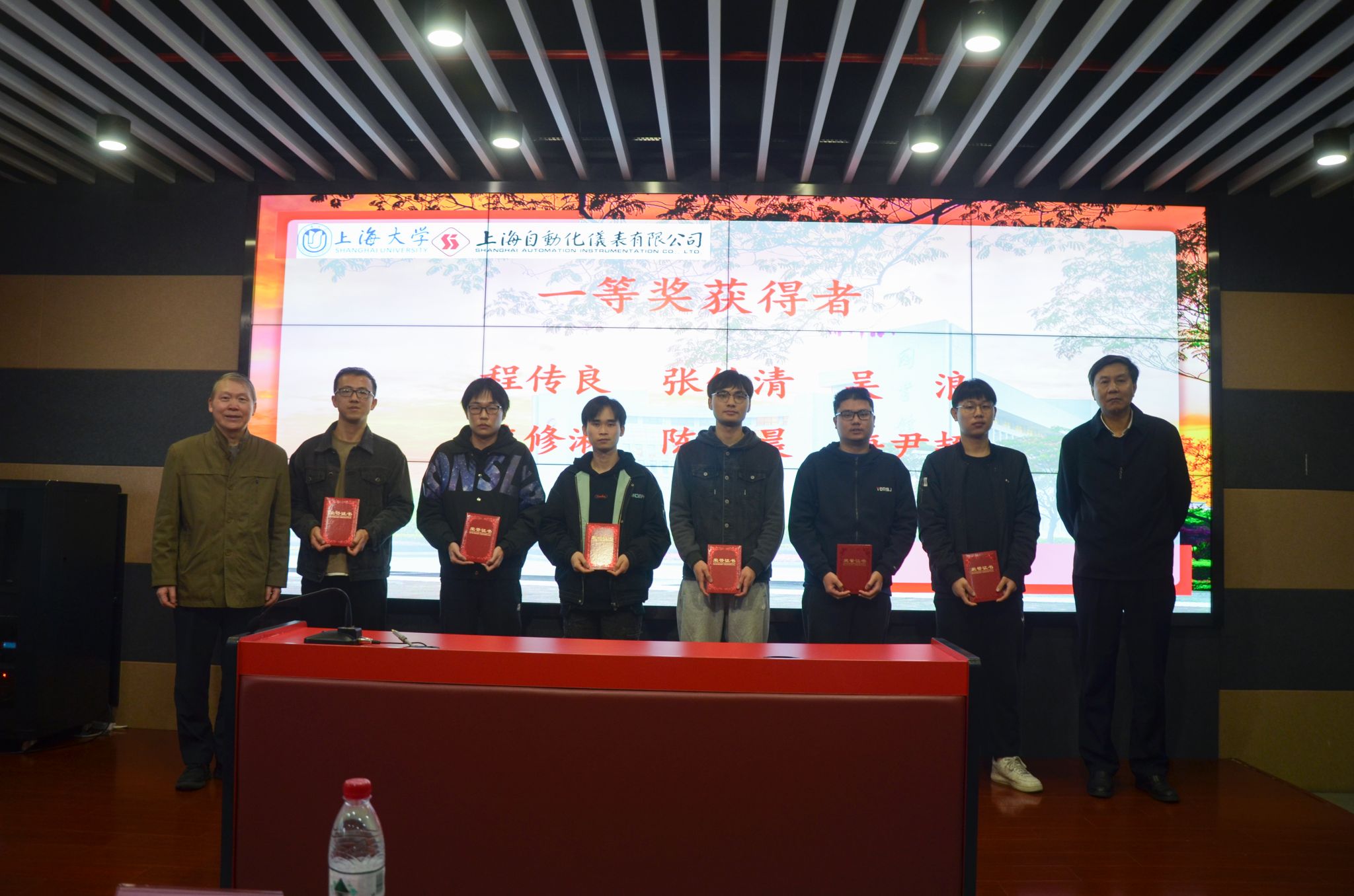 最后,王舒憬老师宣读了2022年度“自仪奖学金”获奖的24名研究生和本科生名单。由自仪公司领导和我院的与会院系领导共同为获奖学生颁发证书,并且与获奖学生合影留念。