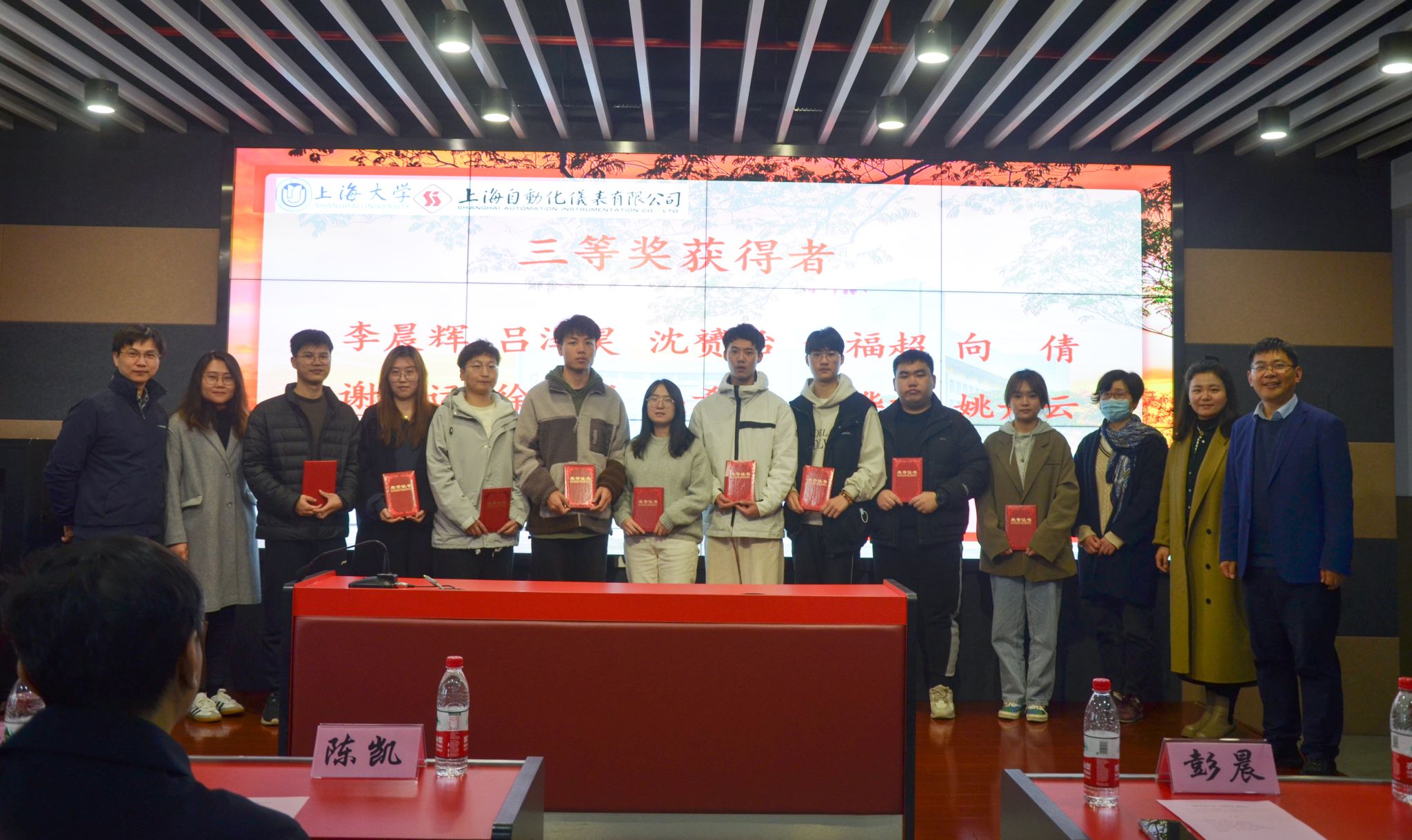 国内规模最大、产品门类最全、系统成套能力最强的自动化仪表制造企业——上海自动化仪表有限公司副总经理、总工程师陈凯先生、纪委委员兼技术中心党总支副书记张琴怡女士、人力资源部部长助理罗洁女士等一行公司领导,以及上海大学自强书院院长费敏锐教授、我院副院长彭晨教授、自动化系总支书记邵勇老师、系主任杜大军教授、电气工程系总支书记周岐斌老师、系主任王灵教授、我院研究生党建中心暨研工办主任王佳寅老师、自动化系党总支副书记高红梅老师等出席了典礼。会议由自动化系主管研究生工作副主任王舒憬老师主持。
