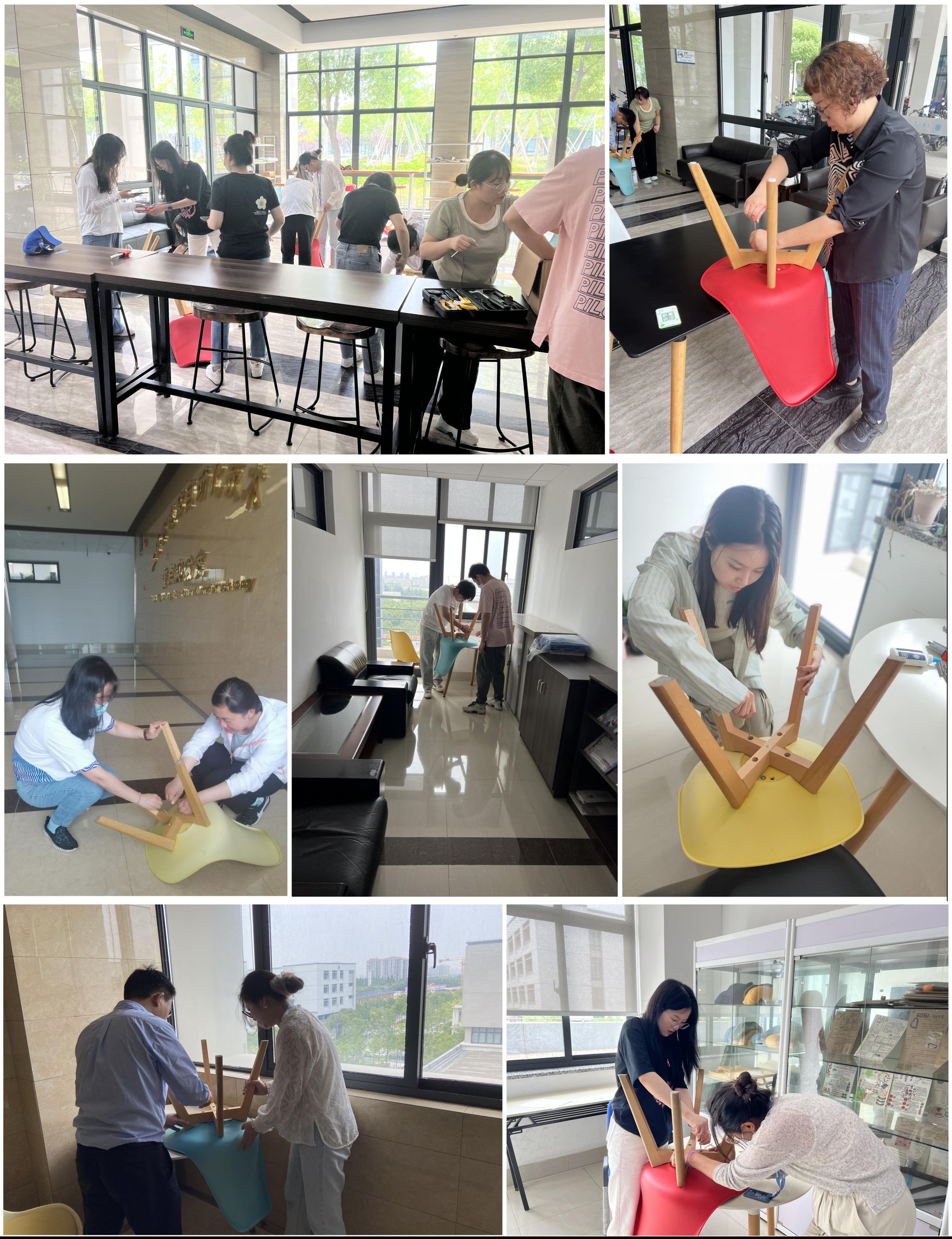 机自大楼1楼大厅及各楼层公共区域均布置有公用家具,这些区域已成为师生休息、谈话、会议、临时实验的好去处。由于使用时间长、人数多,许多家具特别是休闲椅出现了摇晃、椅脚脱落等不同程度的损坏。损坏的家具随意放置,既是资产的浪费,也带来安全隐患。为解决现有问题,响应广大师生的需求,自动化系办公室党支部牵头组织了本次实践活动。
