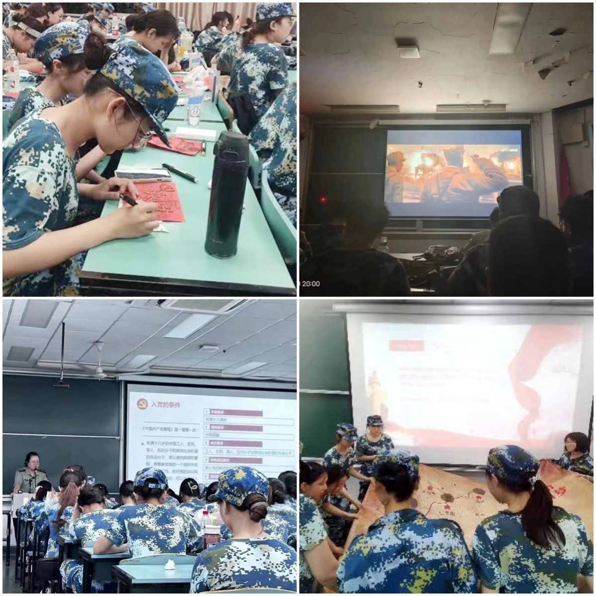 军训期间,我院各连队都开展了丰富多彩的党团活动,有知识性的科普,也有影视性的观赏,更有趣味性的游戏。这些党团活动围绕四个主题展开,分别是“不忘初心——谱新篇,高举时代旗帜”;“牢记使命——明志向,激扬青春理想”;“筑梦上大——讲校史,赓续红色血脉”;“接续荣光——炼品格,传递精神火炬”。各连队发挥了自己的特色,通过讲座、短剧、知识竞赛等形式,将党团活动办得有声有色,提升了学生的爱国荣校情、集体凝聚力和专业认知度。军训期间,我院连队共收到入党申请书10份,入团申请书5份,思想汇报257份。