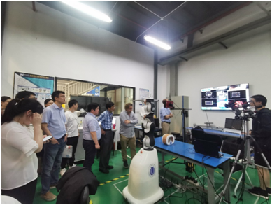 交流会后,一行人参观了我院的上海市智能制造与机器人重点实验室、脑机工程研究中心、微纳增材制造及机器人实验室等,全面了解我院相关实验室的建设及最新进展情况。