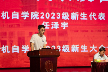 2023级硕士研究生任泽宇作为新生代表发言。任泽宇同学表达了对大学四年机自生活的感激和对研究生成长的期待,表示要做初心不改、砥砺前行的有志青年,秉持对科研的热爱,勇于面对科研道路上的困难与挑战;要做自律、自主、自省的慎独青年,在学习中敢于提问、善于提问,更好地适应从本科到研究生的身份转变;要做立德修身、全面发展的斜杠青年,在第二课堂第三课堂中丰富研究生生活,在实践中砥砺才干、增长本领。