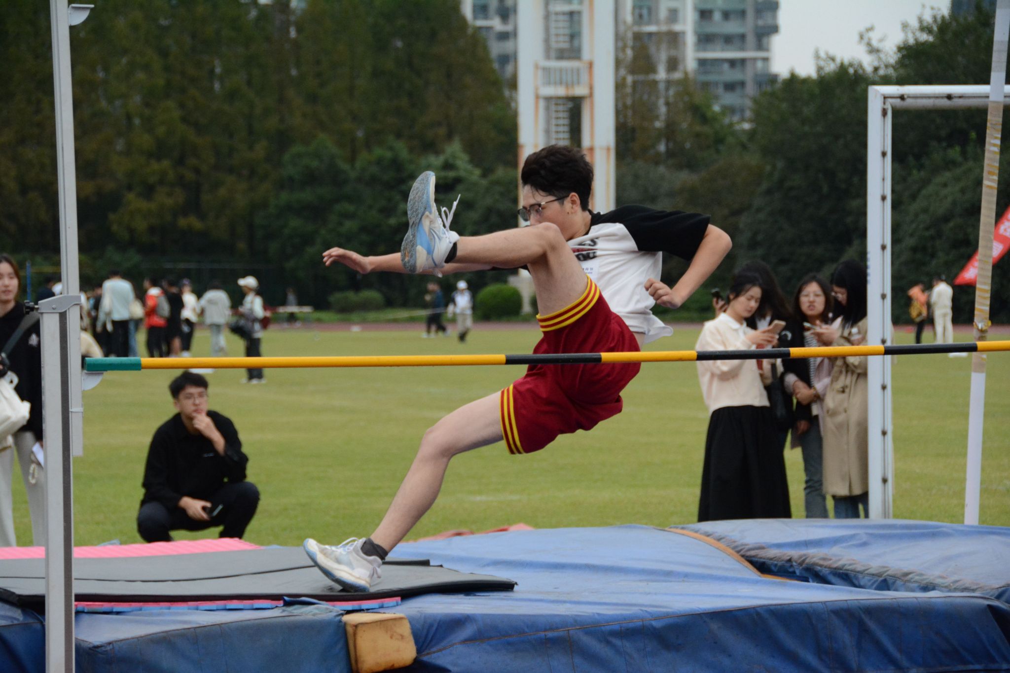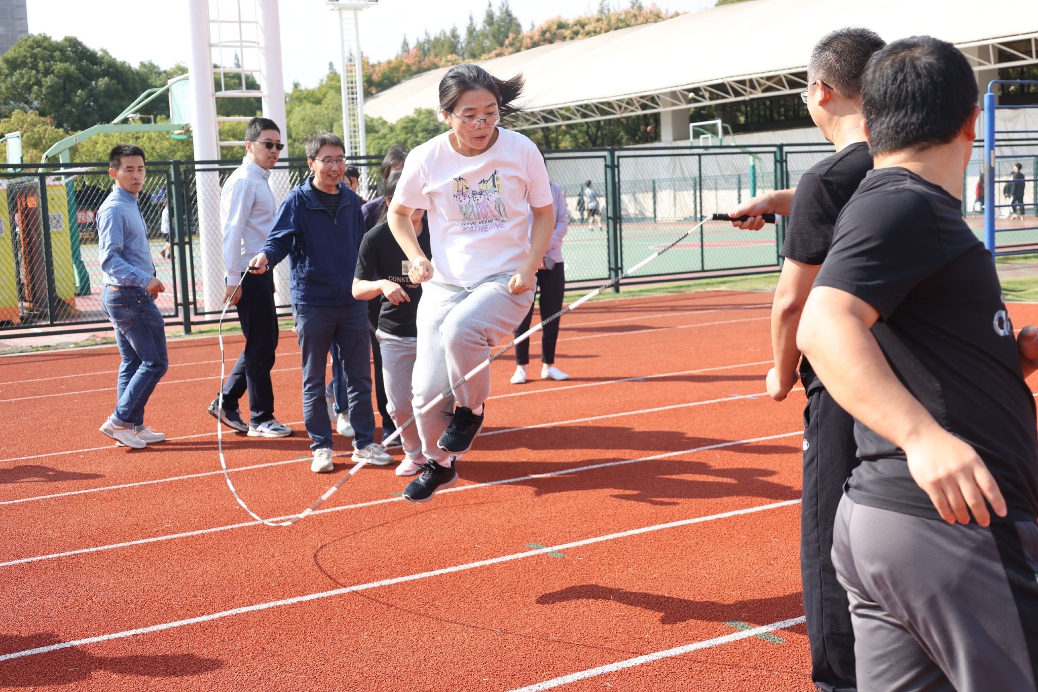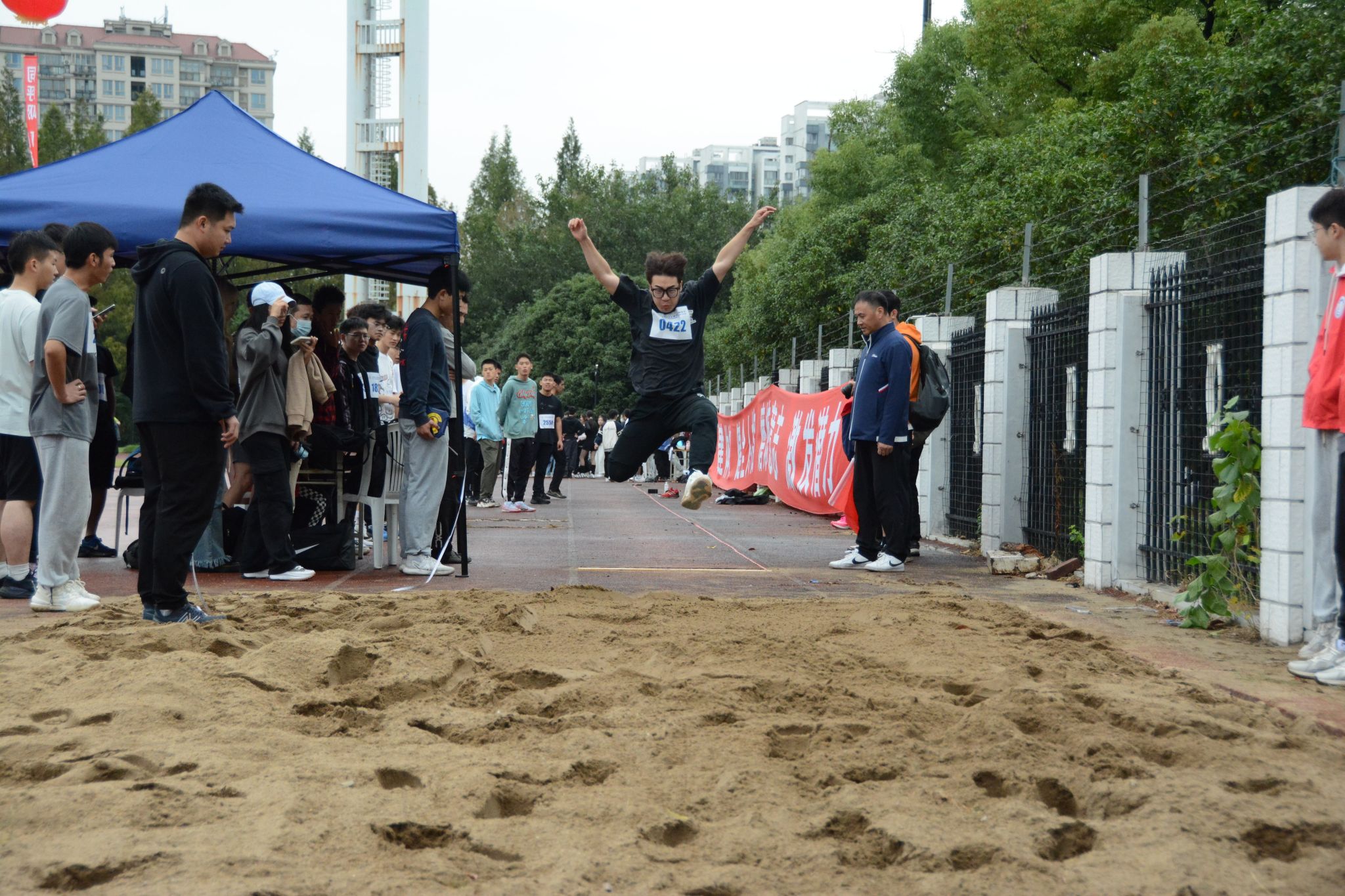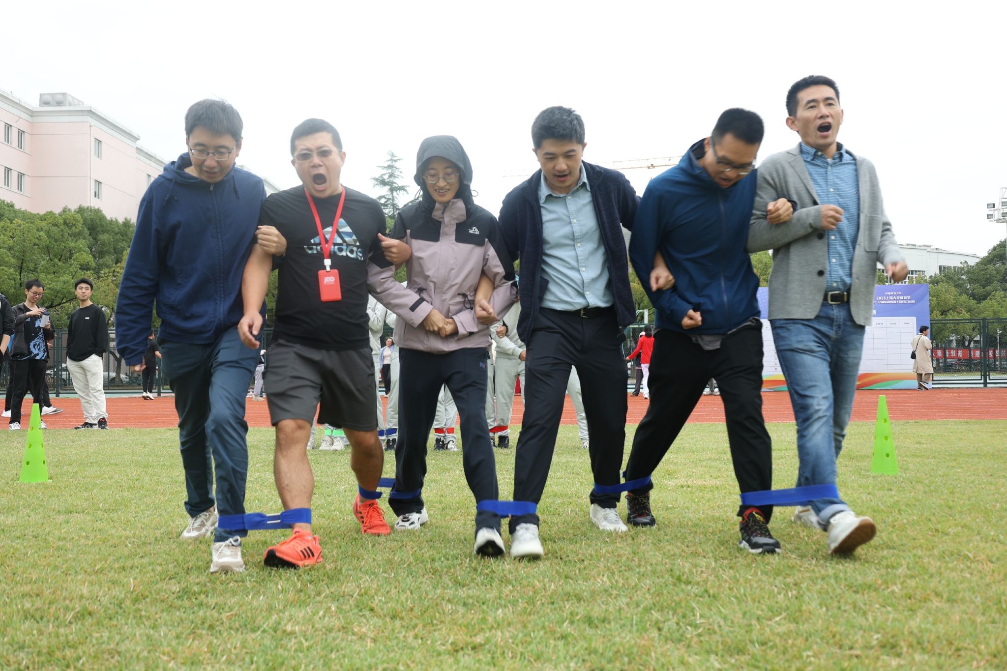 10月20日上午,上海大学第二十六届运动会暨第十六届教工运动会开幕式在校本部东田径场举行。我院共派出103名学生运动员和37名教职工参与本次运动会,包括协力竞走、飞盘九宫格、锁定新目标、接力运砖、不倒森林、4×100米、拔河、长绳、袋鼠跳迎面接力、旋风跑、单脚跳接力、60米迎面接力、实心球等13个团体项目,100米、200米、400米、800米、1500米、3000米、110米栏、跳高、跳远、立定跳远、跳绳、引体向上、立定跳远、铅球、仰卧起坐、平板支撑等16个个人项目。