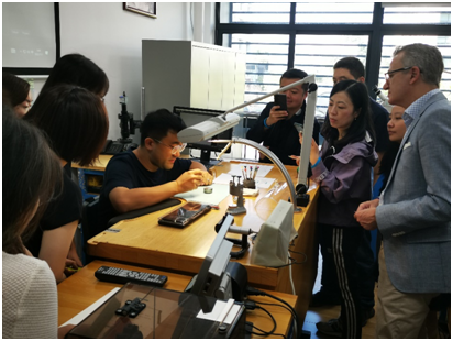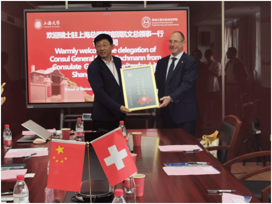 首先,欧阳华副书记对总领事一行来校访问表示热烈欢迎,并介绍了在过去合作的二十多年中,实验室在钟表专业人才培养上取得的成果,同时也提了两点希望,一是希望在钟表专业领域展开更广泛的合作,加强国际交流学生培养,建立联合检测检验中心;二是希望在其他的学科领域与瑞士进一步交流合作。瑞士驻上海总领事馆总领事也充分肯定了联合实验室的合作成果,并向我校赠送了“中瑞合作典范,引领工匠精神”的锦旗。