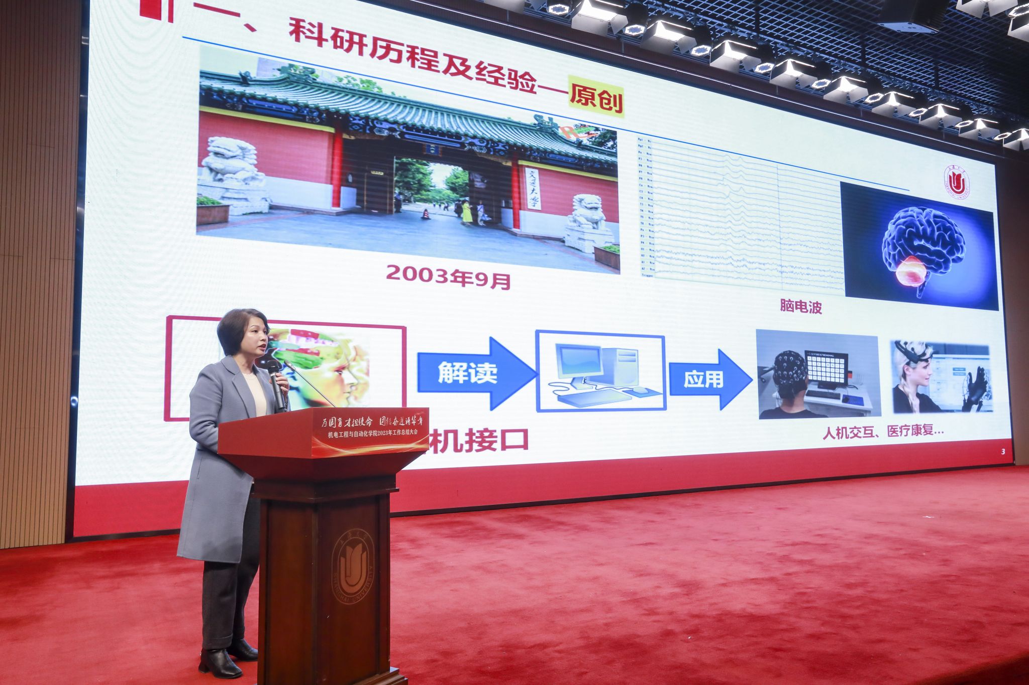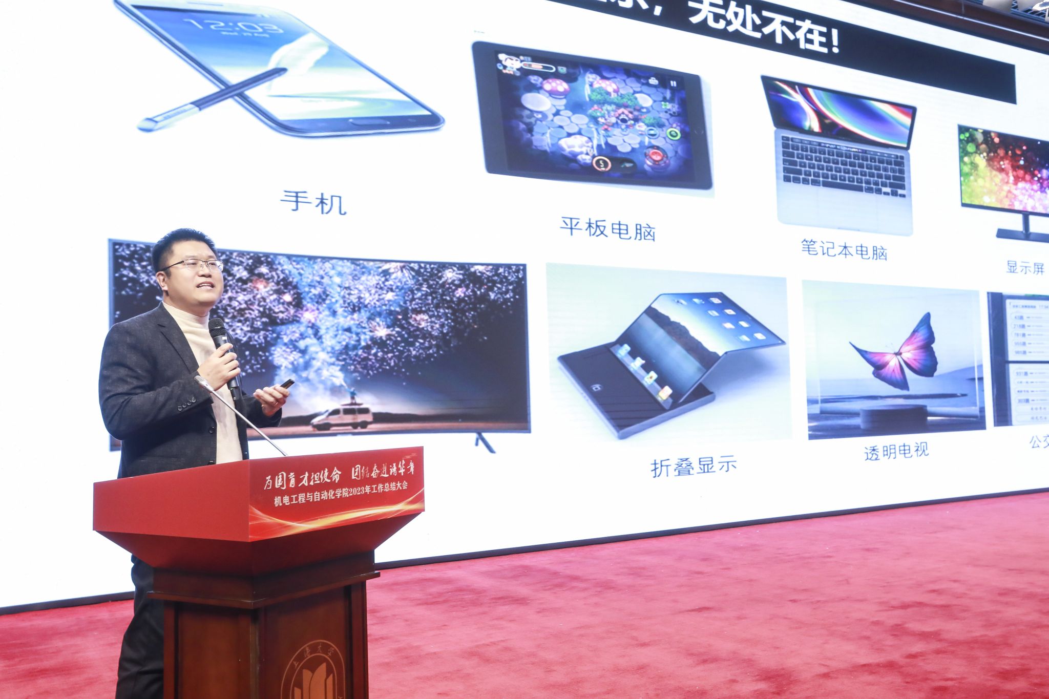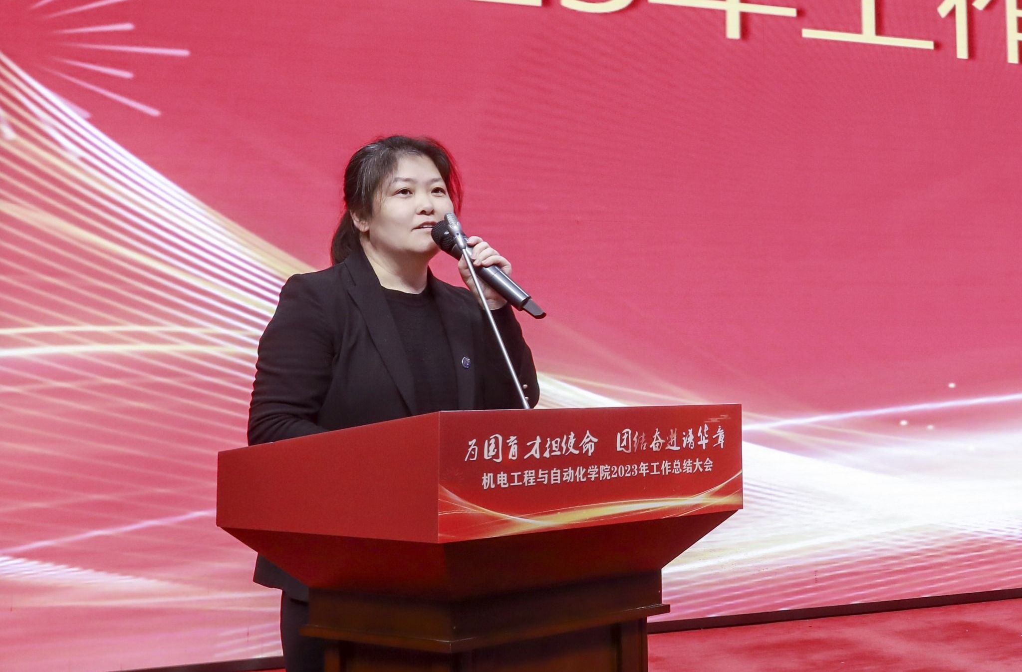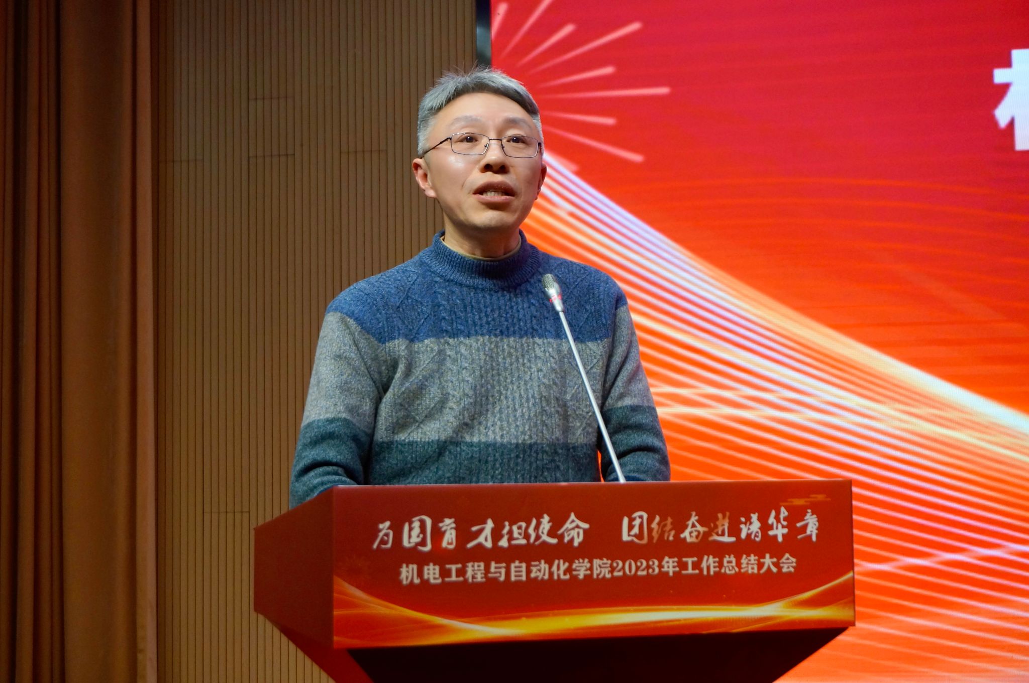 于瀛洁院长详细介绍了学院 2023 年度在党建、学科、人事人才、人才培养、科学研究、国际交流、招生就业和机构改革等方面的工作亮点,并提出在 2024 年要坚持“1 个中心+7 大任务”,争取在学科建设、有组织科研、人才培养质量提升等方面取得新突破。