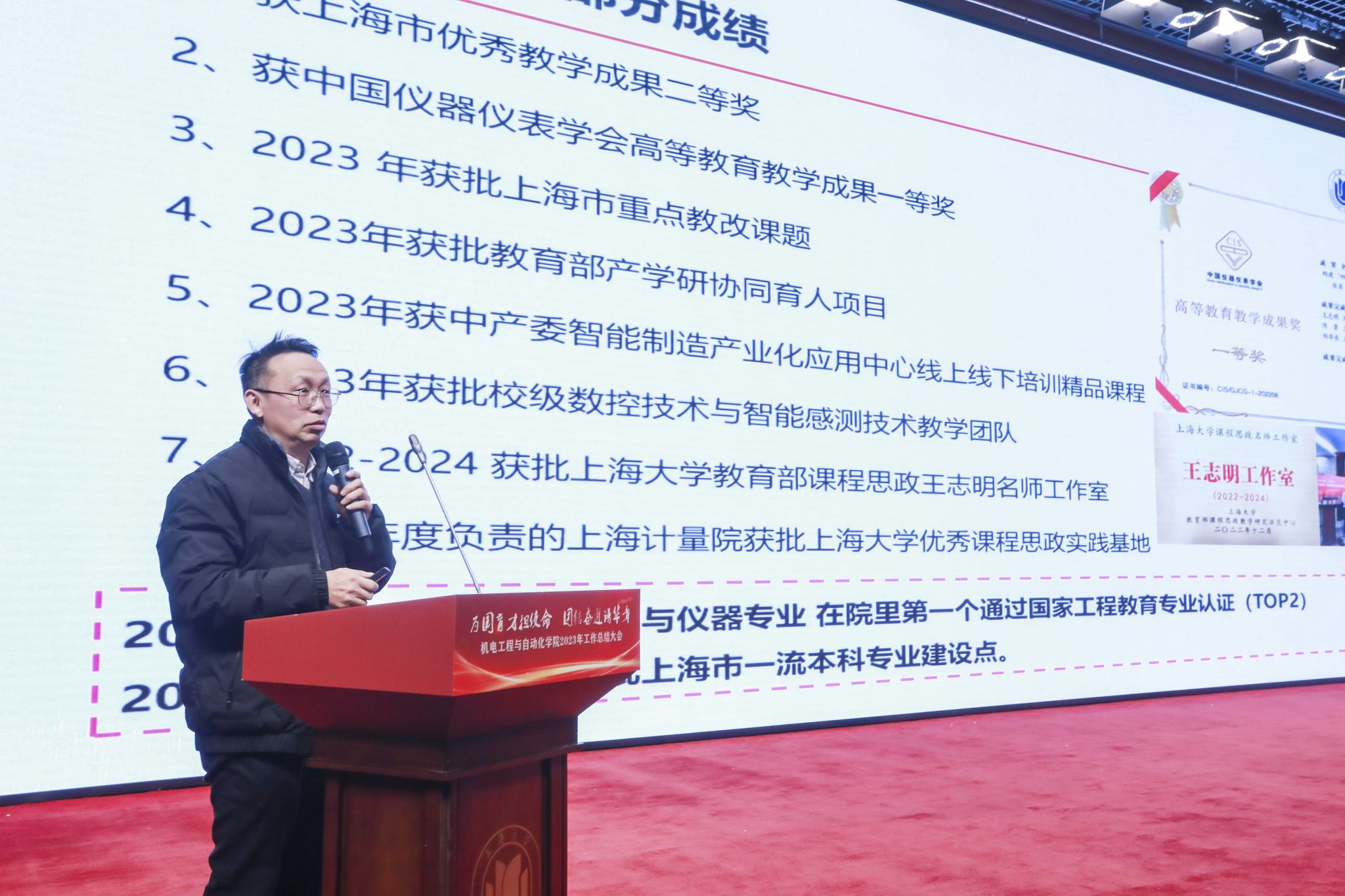 1月26日下午,“为国育才担使命,团结奋进谱华章”yl6809永利官网2023年工作总结大会在宝山校区图报厅举行。我院党委书记陈方泉,院长于瀛洁,学院领导班子成员,上海大学终身教授方明伦,全体教师出席了此次活动。我院校友、锐嘉科控股创始人、总裁王迅作为特邀嘉宾也出席了此次大会,大家齐聚一堂辞旧迎新。