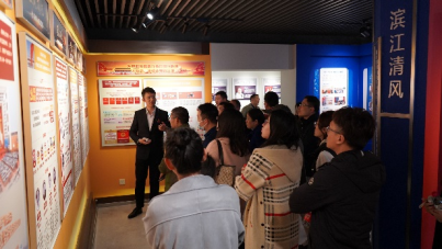 在引导人员的带领下,党员干部们依次参观基地的“一路前行、新的征程、滨江清风、追案溯源、警钟雷鸣、筑牢防线、初心召唤”七个篇章,深入了解党在各个历史时期全面从严治党的坚定意志和奋斗历程,以及宝山区在推进党风廉政建设和反腐败工作创新方面取得的成效和经验。