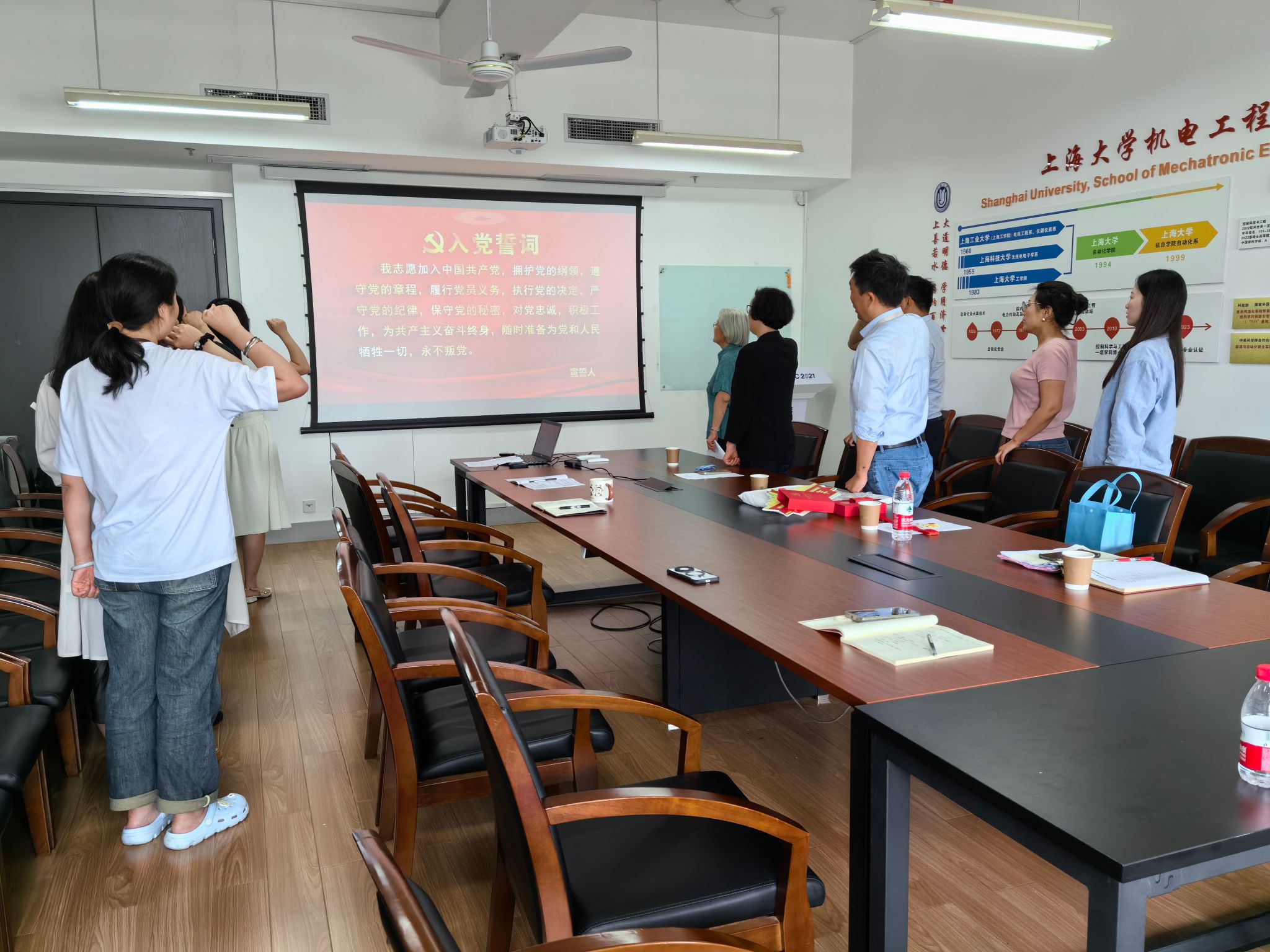 陈荣莲老师领誓,带领现场的党员同志们重温入党誓词。