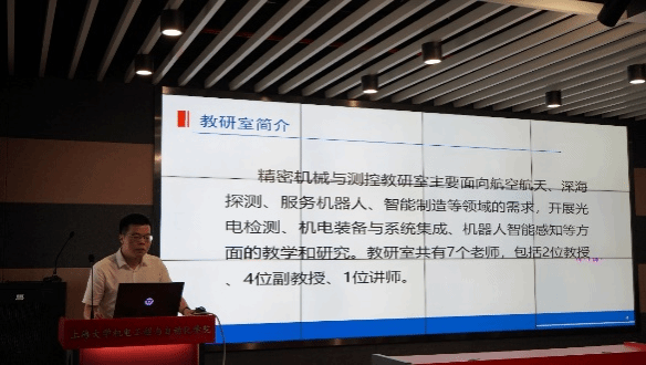 赵其杰书记致辞欢迎来参加本次夏令营的所有同学,希望同学通过实地考察,加强对上海大学机械工程学科的深入了解,欢迎同学们能到上海大学继续深造和交流合作。田应仲主任介绍了我院的概况以及上海大学机械工程学科悠久的发展历史,着重介绍了学科的办学理念和特色、导师队伍、研究成果、研究生就业前景等。张健滔副主任介绍了夏令营活动的详细安排,机械工程学科人才培养环境和研究生招生、研究生奖学金等政策。