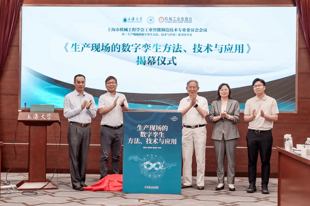 随后,上海大学原党委书记兼常务副校长、终身教授方明伦携手时静社长,以及《生产现场的数字孪生方法、技术与应用》一书的三位作者:刘丽兰、高增桂和施战备,共同为《生产现场的数字孪生方法、技术与应用》新书揭幕。本书是数字孪生领域的重要著作,提供了一套系统全面、实操性强的数字孪生应用指南。
