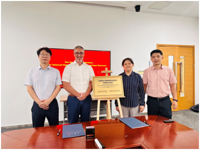 2024年9月18日,德国亚琛工业大学通用力学所所长、机械学院副院长Bernd Markert教授和yl6809永利官网院长于瀛洁教授在苏州签署了“生物材料与智能结构先进仿真中德联合实验室”,并对实验室进行了揭牌仪式。亚琛工业大学通用力学所Markert所长表示希望继续推进与上海大学的多方位合作,上海大学于瀛洁院长感谢Markert所长在紧密的行程中抽出时间探讨双方合作,表示以联合实验室为契机,大力支持双方开展高水平的合作交流。