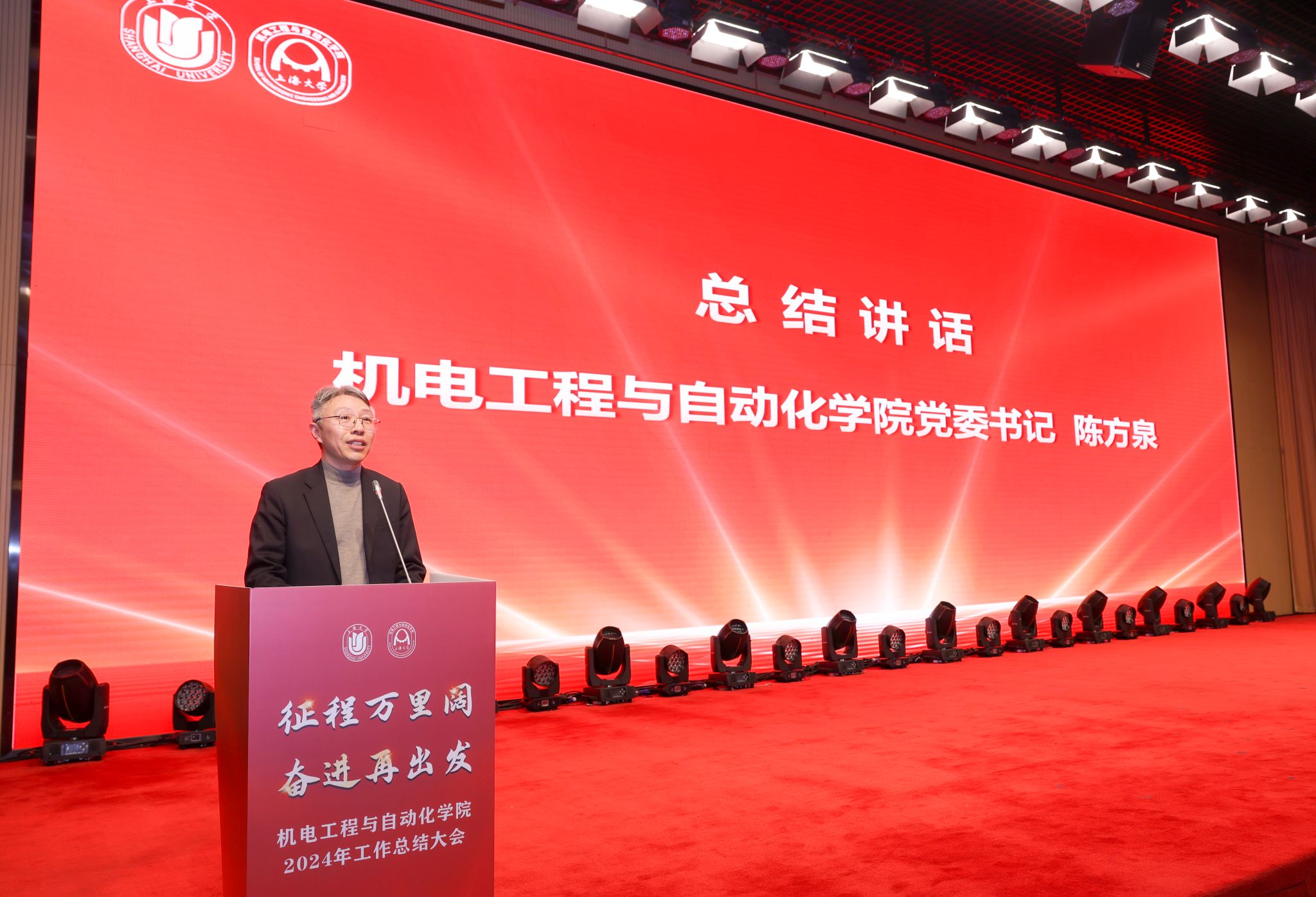 最后,学院党委书记陈方泉作总结讲话。陈书记对学院各项事业取得的新进展、新成效以及全院师生的共同努力表示肯定和感谢,并对全体教职工提了三点希望:一是要识变之智,准确把握学院发展的新形势、新任务,推动学院发展、学科建设;二是要应变之方,深度推进人才培养改革,为教育赋能,提升人才培育质量;三是要有求变之勇,在价值共创中推动学院高质量发展。