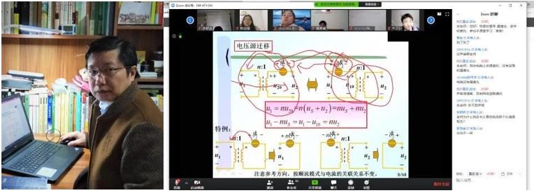 融入学生群体,鼓励学生提问。朱明老师本学期承担的《电路》课程是一门公共基础课,讲述线性集总参数电路的基本理论、基本概念和分析计算电路的基本方法。疫情暴发后,朱明老师就利用班级QQ群与同学讨论课程的上课方式,通过讨论与游戏有关的科幻问题,“降维打击”启发学生去探索读书学习的意义和方法。通过提问互动的方式了解学生寒假作业完成情况并进行问题解答,借助PPT和画笔辅助工具讲授电感及理想变压器等知识点内容。通过网络平台及时关注学生听课状况,不断引导启发学生思维。学生能主动参与课堂互动,气氛活跃,有效地保障了课程教学质量线下、线上同质同效。