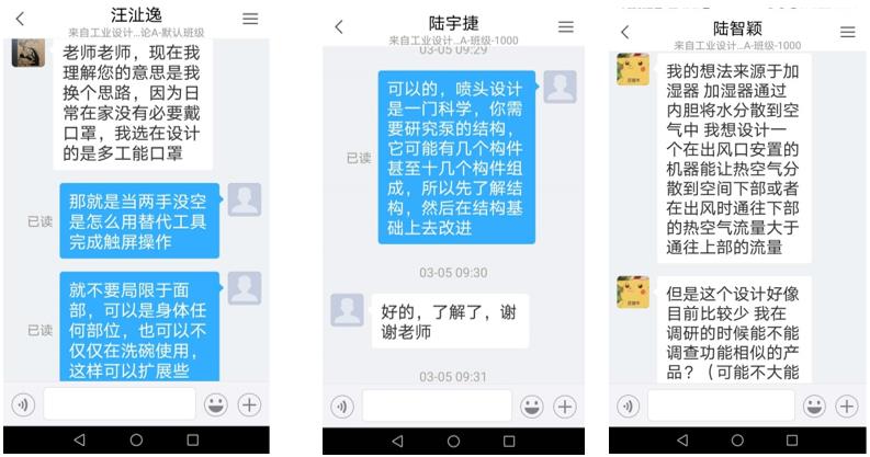 基于课前、课中、课后全过程的在线教学。李蓓蓓老师的《工业设计概论A》课程为保证在线教学与线下教学同质等效,针对课前自学内容、课中互动答疑、课后大作业进行了安排,引导学生积极参与在线学习,提高学习成效。