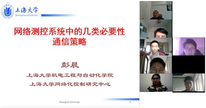 彭晨老师在主讲的《网络化控制系统》课程中,利用网络平台与研究生同学们共同回顾了网络化控制系统的背景、离散事件通信策略等假期前学习内容,使同学们对网络化系统有了更全面的理解,迅速地恢复学习状态。随后,两位研究生同学就基于事件触发的网络化控制系统研究分别进行了学习汇报与研讨。最后,彭老师提出了相关的问题并组织学生进行了探讨。下课前,他还深切地嘱咐同学们,在家要珍惜时间搞好学问,鼓励大家把论文写在祖国的大地上,为祖国的进步贡献绵薄之力。