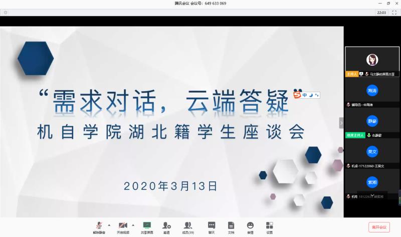为深入了解湖北籍学生生活和学习情况,切实帮助学生解决面临的困难,增强学生战胜疫情的信心。3月13日晚上和3月14日上午,我院党政领导分别与学院在鄂本科生、研究生进行了两场座谈会,倾听心声,传递关怀。