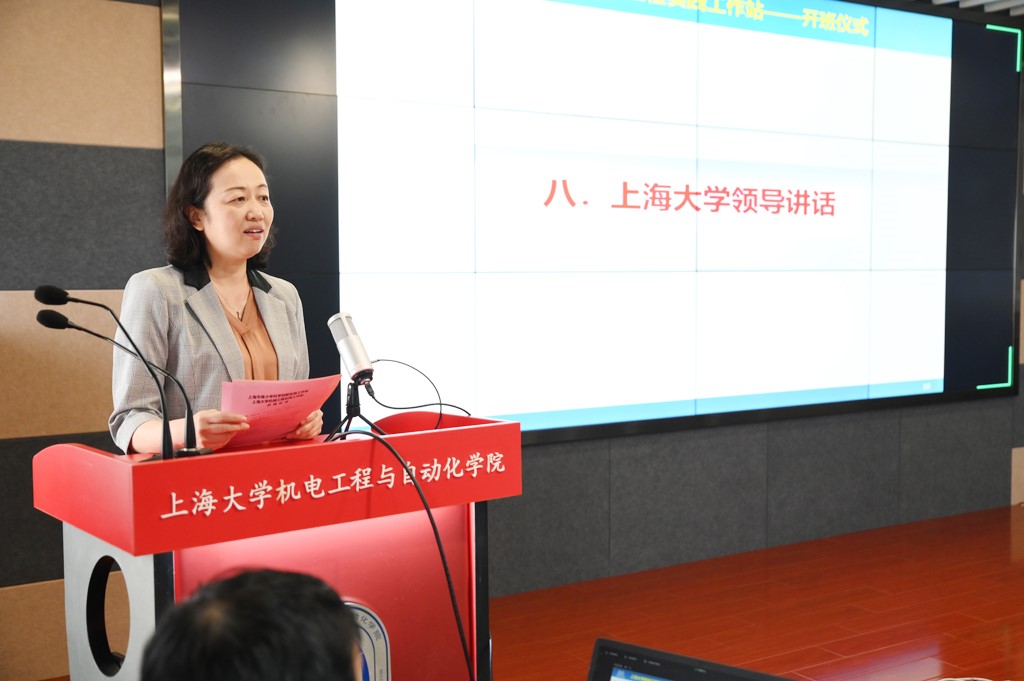 最后,上海大学党委副书记、副校长龚思怡教授讲话。龚书记首先代表上海大学对“上海大学机械工程实践工作站”开班表示祝贺,对上海市科委、上海市教委对“上海大学机械工程实践工作站”的指导支持表示衷心感谢。龚书记表示,上海大学是一所兼具红色文化基因和改革创新精神的高等院校,一贯注重学生创新精神和实践能力培养,通过一系列培养体制创新,有效促进学生综合全面发展和创新实践能力提升。“上海大学机械工程实践工作站”开班,是学校人才培养资源向基础教育阶段延伸的重要举措,也是学校为落实上海市建设“全球影响力的科技创新中心”战略任务、加强同基础教育互联互通的重要抓手。