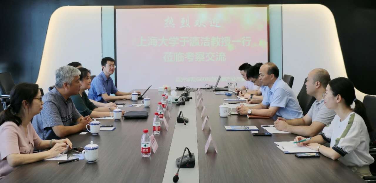 首先,杨培强代表嘉兴学院及G60研究院对上海大学于瀛洁书记一行表示热烈欢迎,并介绍了嘉兴学院的总体情况和G60研究院的成立背景、主要工作目标、目前入驻团队和运行基本情况等。他希望嘉兴学院与上海大学之间、G60研究院与我院之间,在产业技术创新支持、科技成果孵化转化、人才培养与教育培训等方面,开展广泛、深入的合作。