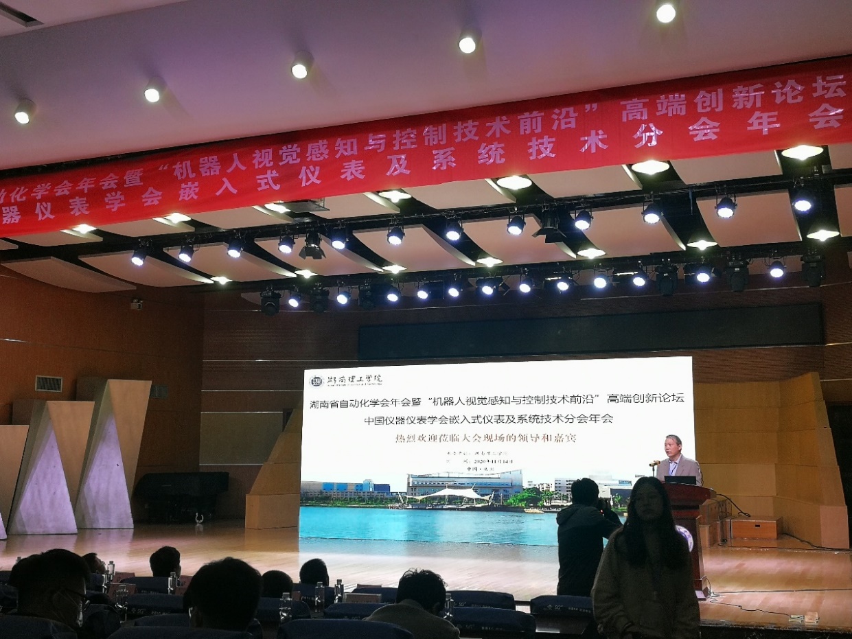 由中国仪器仪表学会嵌入式仪表及系统技术分会、湖南省自动化学会和上海市仪器仪表学会主办,湖南大学、上海大学、安徽工程大学、上海市电站自动化技术重点实验室、上海市智能自动化与网络化控制国际联合实验室、国家外国专家局/教育部复杂网络化系统智能测控与应用学科创新引智基地等单位承办的“2020全国嵌入式仪表及系统技术会议——机器人视觉感知和控制技术前沿”于2020年11月13-15日在湖南理工学院成功举办。来自清华大学、中南大学、湖南大学、国防科技大学、广东工业大学、南京邮电大学、上海师范大学、南京航天航空大学、上海电力大学、上海工程技术大学、华东理工大学、桂林理工大学、安徽理工大学、安徽工程大学、鲁东大学、青岛大学、南通大学、湖南师范大学、江苏科技大学、湘潭大学、常数理工学院、河南科技学院、南通理工学院、海军航空大学、南通职业大学、山东枣庄学院、河南农业大学、上海申传电气股份有限公司、上海仪器仪表研究所、上海软件中心、上海自动化仪表有限公司、青岛若贝电子有限公司等百余位专家、学者,以及上海大学共约300多名师生们参与了本次会议。湖南理工学院副校长张国云教授代表承办单位致欢迎辞,并向各位与会代表和来宾表示热烈欢迎。中国仪器仪表学会嵌入式仪表及系统技术分会理事长、上海市仪器仪表学会理事长、yl6809永利官网院长费敏锐教授致开幕词。湖南省自动化学会秘书长张小刚致贺辞。