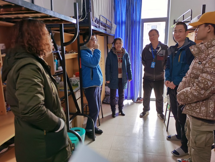 学院领导还看望了宿舍区值班的社区工作人员,对他们辛勤的付出表示衷心感谢,希望他们一如既往的关心好、照顾好学院留校研究生的生活。
