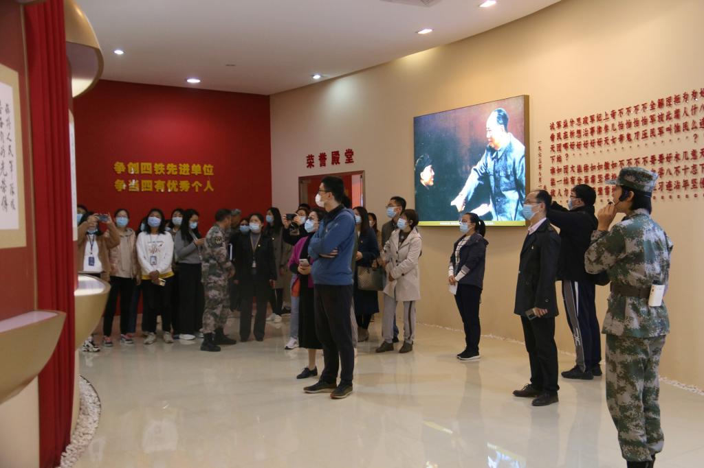 师生一行在好八连战士的讲解下进行了参观学习。展馆通过文字、实物、图片及视频展示了八连的优秀事迹,他们身居闹市一尘不染,“军事好,如霹雳”、“政治好,称第一”、“纪律好,如坚壁”、“为人民,几十年”,成为全军艰苦奋斗、拒腐防变、全心全意为人民服务的一面旗帜。一件件弥足珍贵的实物,一段段珍贵的影像资料,一面面鲜红的锦旗,一块块荣誉奖章,无一不向我们述说着“好八连”的优秀传统。时代环境在变,使命任务在变,生活条件在变,但“好八连”艰苦奋斗的政治本色从未改变。