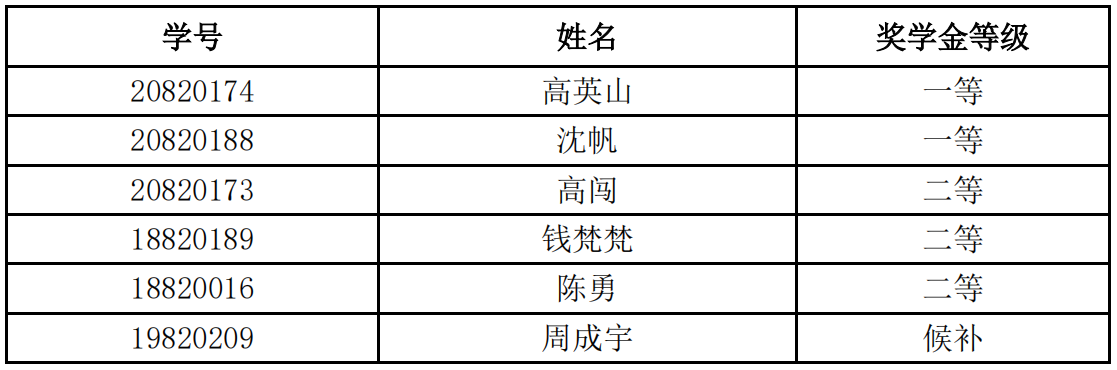 根据《上海大学研究生“和宗焊接”奖学金评审条例》,yl6809永利官网成立研究生“和宗焊接”奖学金评审委员会。经个人申报、班级初审、学院复审、评审委员会无记名打分,评选出yl6809永利官网研究生“和宗焊接”奖学金候选人。结果如下: