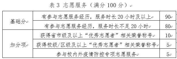 其余各项加分细则如表2-7所示