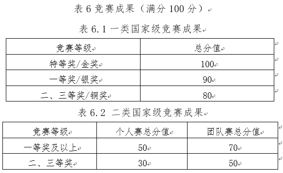 3.竞赛成果=竞赛成果总分值×竞赛成果工作量比例×答辩成绩/100,团队赛工作量比例以公示为准,个人赛工作量比例为1,答辩成绩满分100分;