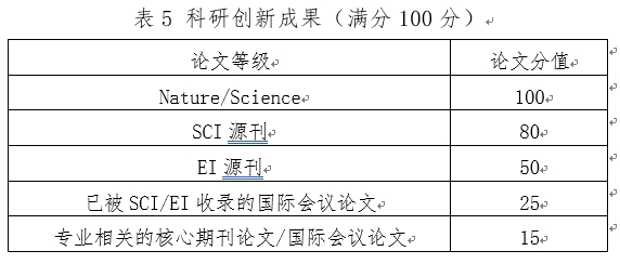1.科研创新成果=论文分值×答辩成绩/100,答辩成绩满分100分;