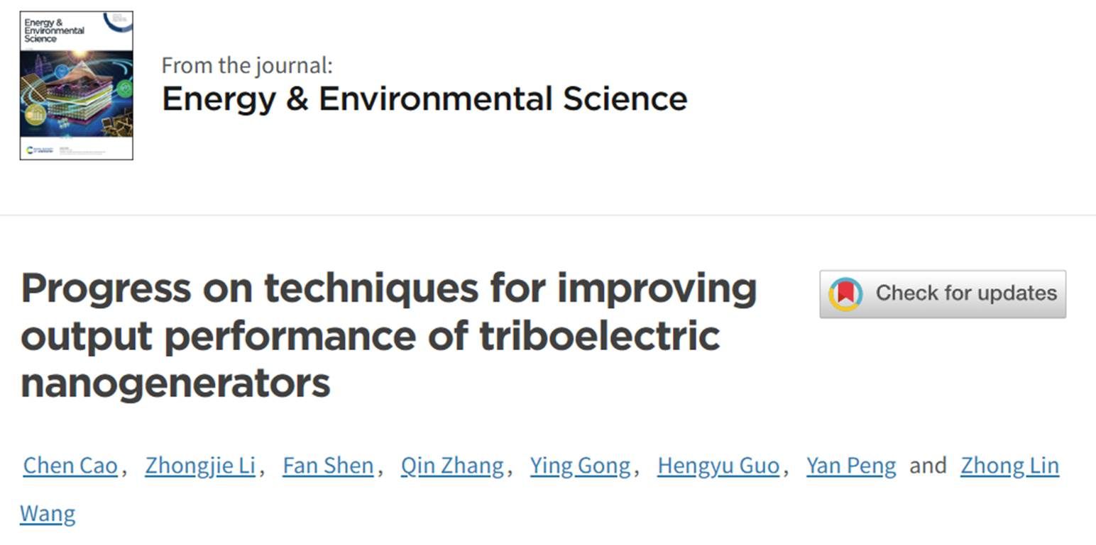近日,我院李忠杰副研究员、彭艳教授课题组和中国科学院北京纳米能源与系统研究所王中林院士合作,在国际著名期刊《Energy & Environmental Science》(IF:32.5)上发表题为“Progress on techniques for improving output performance of triboelectric nanogenerators”的研究综述论文。