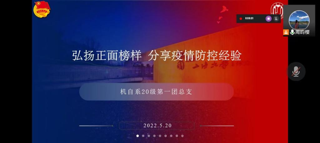 5月17日至20日,机自系本科生分年级陆续开展疫情防控专项主题教育活动。2020级机械设计制造及其自动化、2021级智能制造工程以“因时而进、守‘沪’不息”为主题,传达两委相关工作要求,深入学习领会《上海大学疫情防控期间学生管理暂行办法》相关要求,陈铭老师在学习中感谢2020级机设专业在新世纪男生13号楼、女生22号楼抗疫过程中发挥了“守楼有责”的榜样示范作用,同时也强调,当前全市已经进入社会面全面清零的攻坚阶段,越是稳中向好的关键当口,越要保持高度自律自觉。学习会上,陈老师邀请了李何瑞现身说法,代表机自系本科生第一党支部分享感人故事和抗疫志愿工作体会,3月2日以来,学生党员熊中毅等同志参与新世纪片区党员服务队,并充分调动楼内积极分子的工作积极性,共同维护好疫情期间楼内的学习备考。李何瑞同志报名上大后保部物资志愿服务工作,在零下20℃冷链空间搬运物资。刘宇希同志报名上大师生采访工作,用文字和镜头记录上大人的众志成城,勇敢向前的精神风貌。疫情以来,机自系校内外学生党员们驻守片区、维持核酸秩序,协助后勤搬运物资、参与防疫宣传、在小区内担任核酸志愿者……冲锋在前、争当表率,坚决把责任扛起来、把工作抓起来,团结带领广大入党积极分子和群众齐心协力,在班级群中释疑解惑、回应关切,持续引导班上同学自觉每日抗原+核酸“零报告”,主动增强自律意识,做好个人防护和寝室间相互监督。