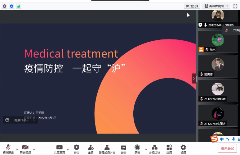 在这青年专属的节日期间,机自系2020级本科生王梦阳、2021级本科生张一清主动请缨,分别为同学们带来“清洁消毒攻坚行动”和“加强疫情防控志愿者自身防护”的经验分享。当新冠肺炎疫情突如其来,无数青年白衣为甲、逆行出征,无色的疫情下闪动着却是无数青春靓丽的脸庞。深入学习习近平总书记在中国人民大学调研考察时的讲话精神,机自系学子们牢记总书记的殷殷嘱托,扎扎实实干事,踏踏实实做人,既多读有字之书,也多读无字之书,以青春最亮丽的底色践行“自强不息”校训精神,,奋力走在创新创业的前列。